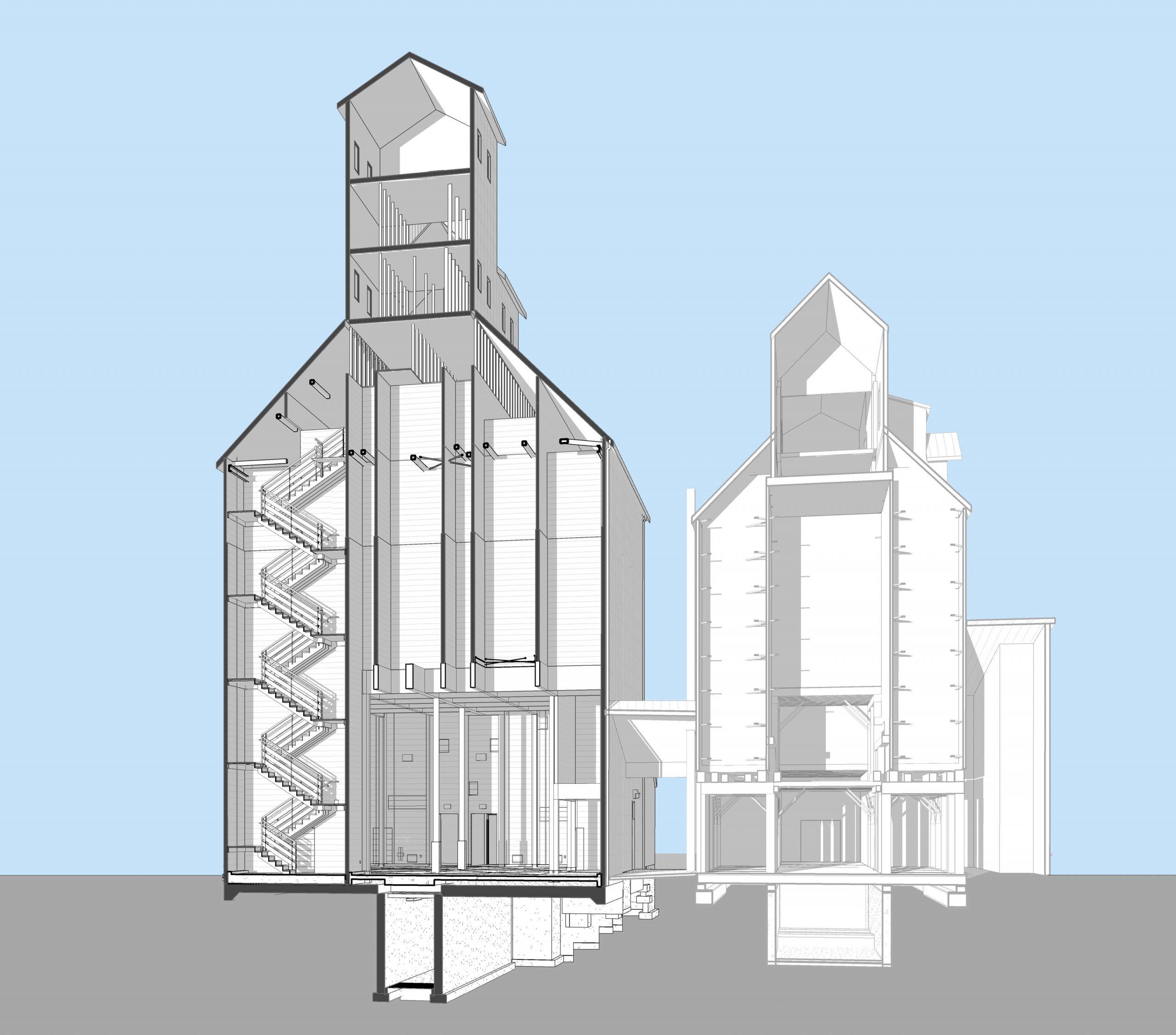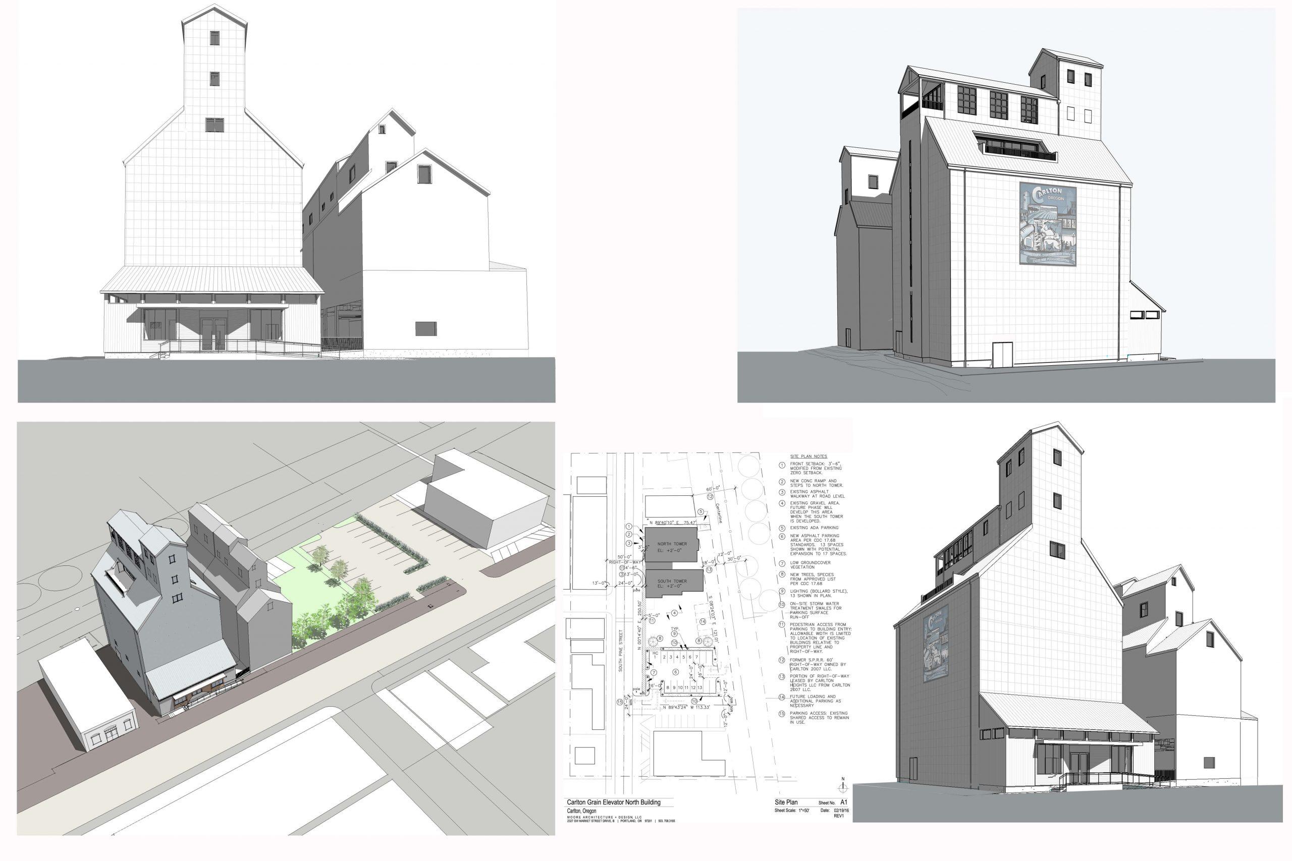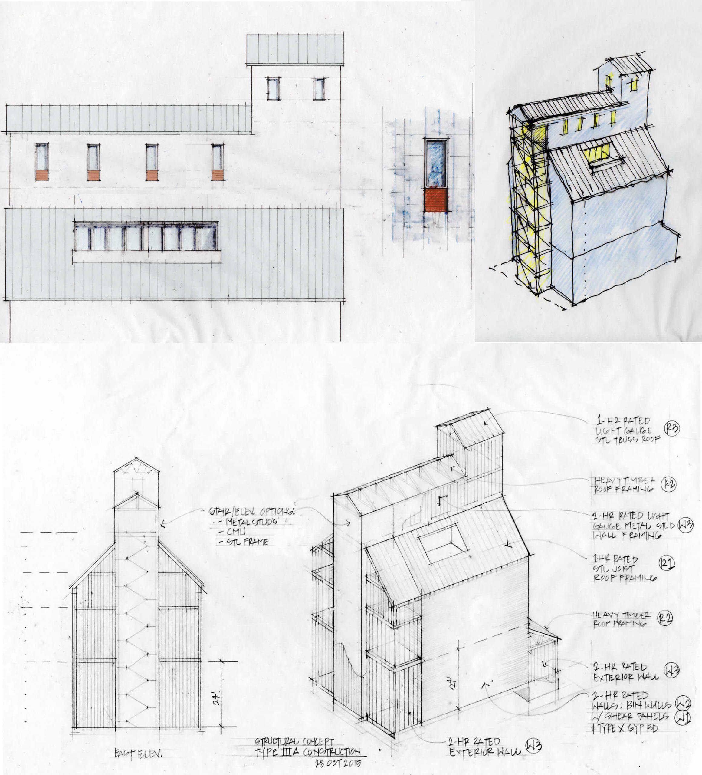 Project consists of evaluation and development of design options to convert a vacant and historic grain processing and storage structure into a place for community use and winery related hospitality.